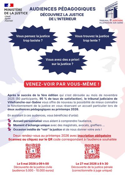 Audience pédagogique - Tribunal judiciaire de Villefranche-sur-Saône