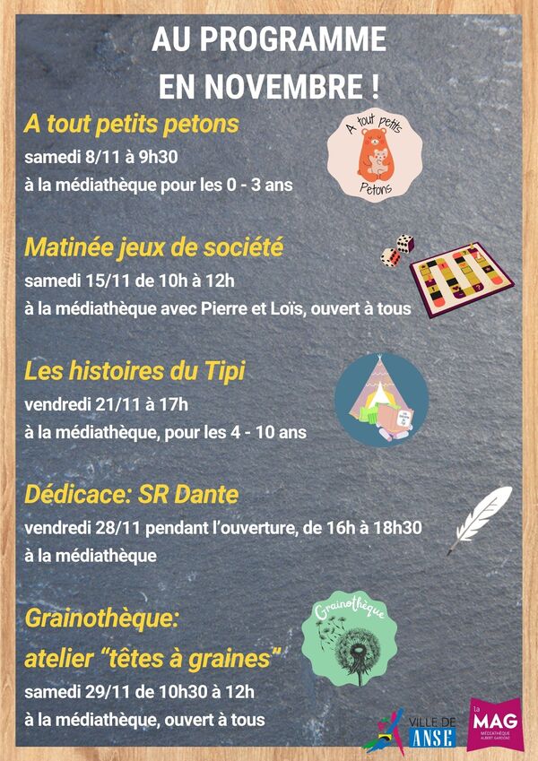 Comme chaque mois, retrouvez les animations phares de votre Médiathèque Albert Gardoni, et bien plus encore !