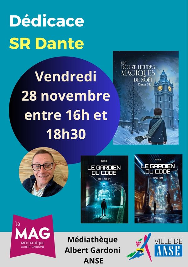 Rendez-vous dans votre médiathèque Albert Gardoni pour une rencontre-dédicace avec l'auteur caladois SR Dante, le vendredi 28 novembre de 16h à 18h30 !