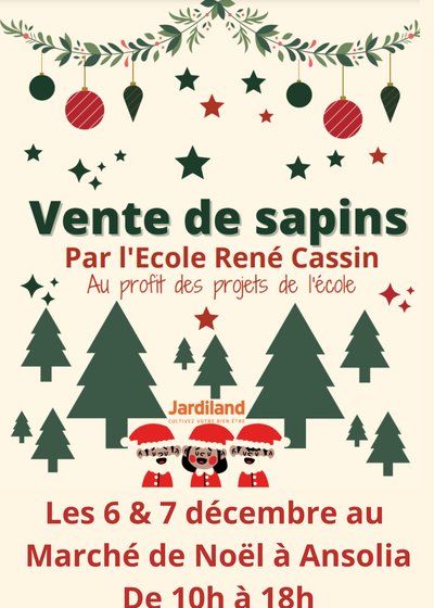 Vente de sapins par l'école René Cassin au Marché de Noël les 6 et 7 décmbre